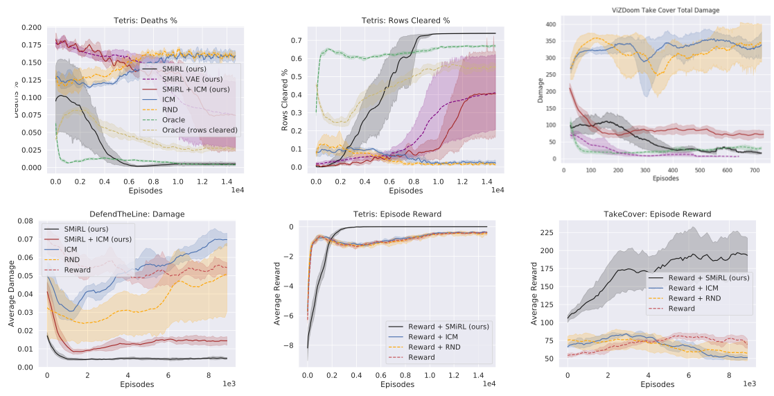 3. 매우 불안정한 환경에서 SMiRL 프레임워크를 사용하였을 때 기존 알고리즘에 비해 좋은 성과를 내는 것을 관찰했는데, 필자가 생각하기에 이것은 너무 불안정한 상황에 놓여 있다면, 일단은 현실적으로 생각하는 것이 좋다는 철학에 기반한 성과가 아닐까 싶다.