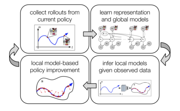 1. 기존 Model-Free DRL은 이미지 observation같은 거로도 잘 학습하지만 sample efficiency가 다소 떨어지고, Model Based Method인 LQR 같은 건 sample efficiency가 좋지만 이미지 같은 건 쓸수 있을리가 없는데 이거 어떻게 두개 못 합칠까?