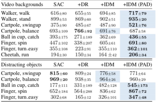3. 로봇 매니퓰레이터 sim-to-real, 장애물 넣기나 백그라운드를 바꾼 Deepmind Control 태스크 등에서 Adaptation을 잘 하는 것을 볼 수 있다. stationary 여부와 상관없이 잘 되는 것을 볼 수 있다.