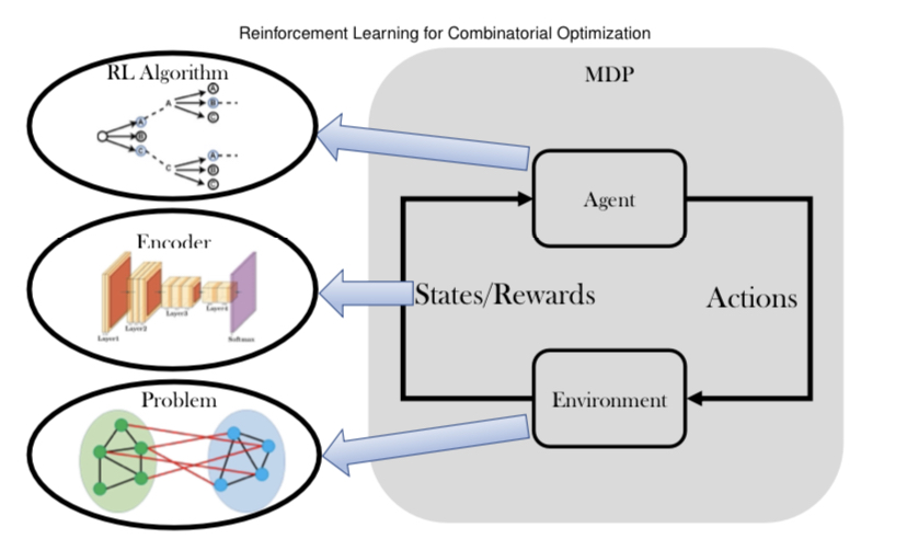 1. Combinatorial Optimization(CO)는 일반적으로 TSP등 조합을 최적화하는 매우 어려운(NP-hard)에 대한 솔루션이다. 대표적인 어플리케이션으로는 칩 설계, 교통체계 최적화, 유전자 설계 등이 있다.
