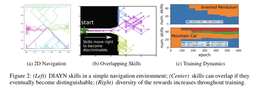 3. 리워드 없이 다양한 스킬을 학습할 수 있었고, 학습이 진행됨에 따라 스킬들이 분별가능해짐을 알 수 있다.