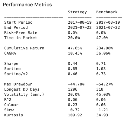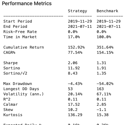 MDD 4%, 소르티노 12라는 파멸적인 결과를 얻을 수 있었다.