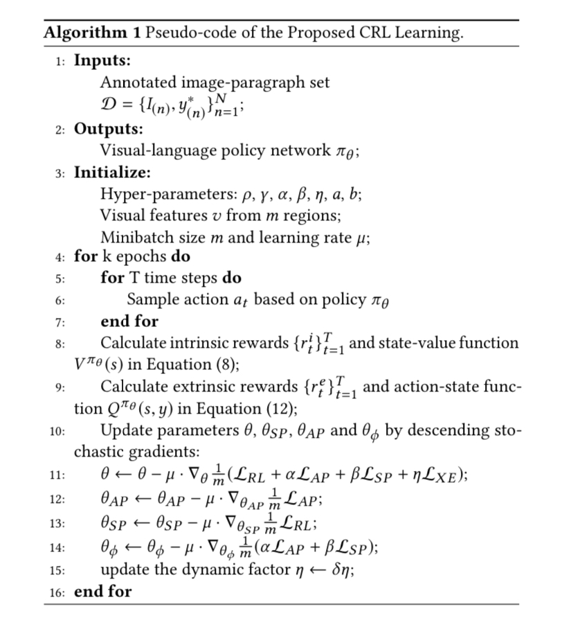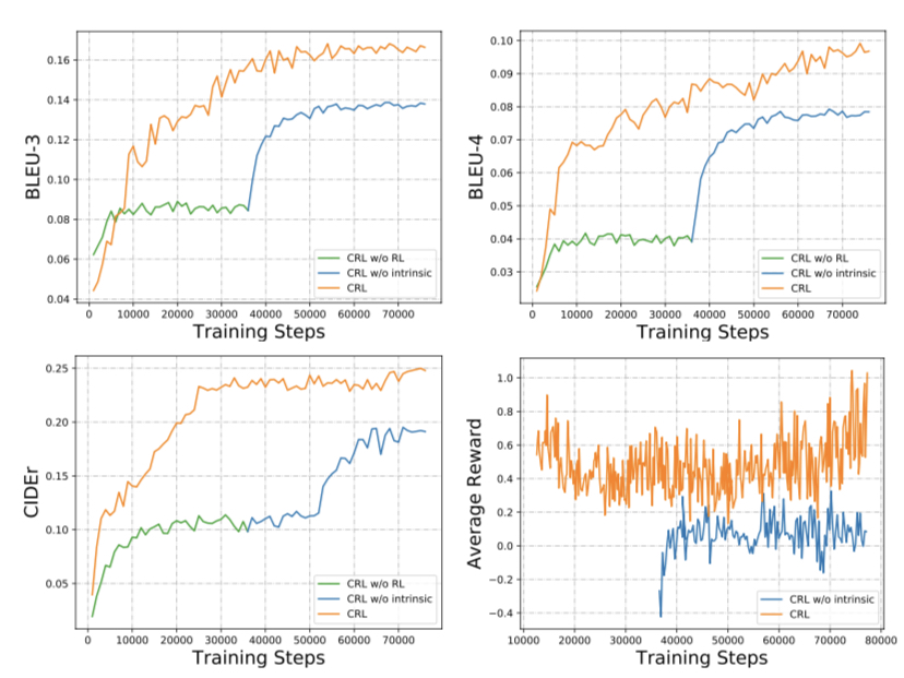 3. 1번에서 언급한 기존 방식의 문제점을 해결하는 아주 자연스러운 형태의 Visual Paragraph generation이 가능했고, RL, curiosity가 모두 성능을 올리는데 중요한 역할을 한 것 같다. curiosity는 앞으로 generative model의 새로운 패러다임이 될 수도 있을 것 같다.