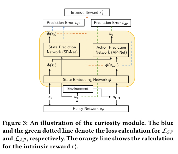 2. 일전에 소개했던 Self-Supervised 기반의 Intrinsic Reward와 기존에 존재하는 언어적 메져의 선형결합으로 정의되는 Extrinsic Reward의 합으로 최종 리워드가 정의된다. 추가로 Pretraining도 사용한다.