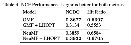 While this method tends to be a "generalization-first" approach, experimenting on OOD tasks is really important. Task diversity is the key. So this paper applies LHOPTs to two unseen tasks, which are Neural Collaborative Filtering and Speech Recognition.