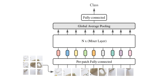 최종적인 MLP Mixer 구조는 이미지를 패치로 나누고, 패치당 Fully-Connected를 적용한 다음, Mixer Layer에 넣고, Global Average Pooling을 거쳐, 최종적으로 다시 FC에 들어가 클래스를 뽑는다. 진짜 순수하게 MLP만 썼다. 독한놈들