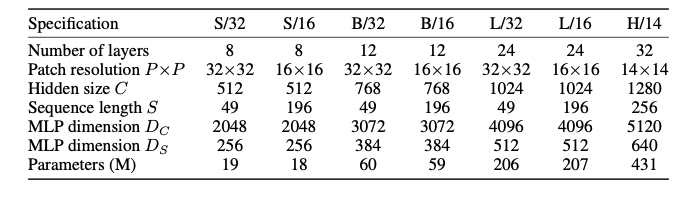 MLP Mixer 구조를 7개나 만들어 실험했다고 한다.